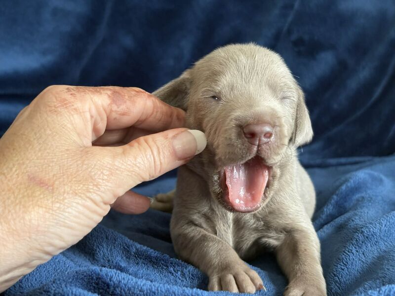 Join us in welcoming Omega and Whisper's puppy Silver Male - Orange Collar!